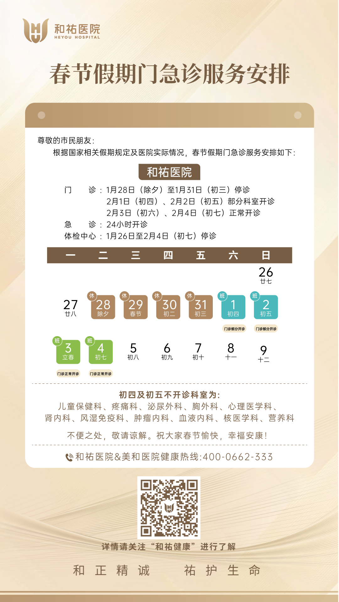 新春佳节之际,和祐医院向您及家人致以最诚挚的祝福,祝您新春快乐、阖家安康!
