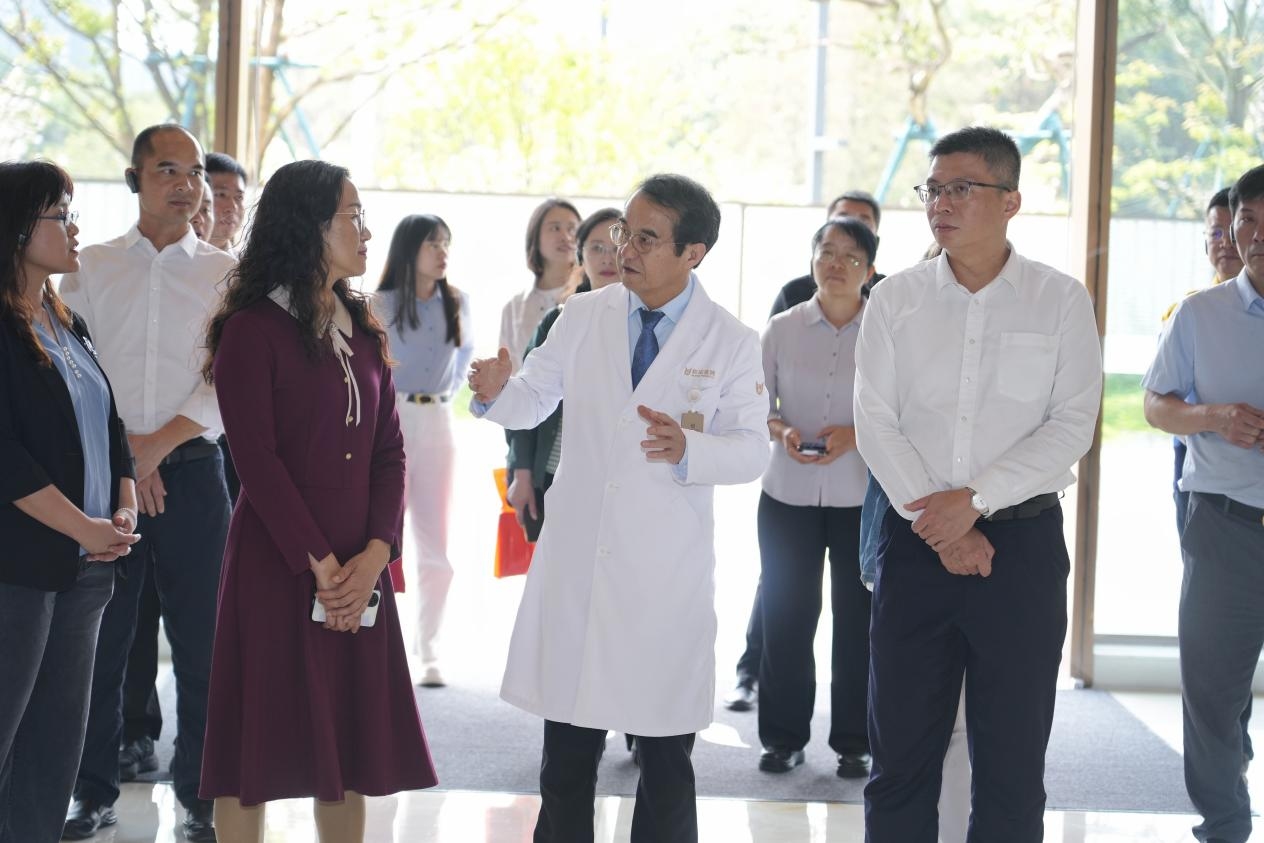 民主党派调研组深入医院各个区域实地调研,了解医院的整体架构,包括特色科室、多学科协作模式、学科建设、人才引进与培养机制、智慧医疗建设、质子重离子中心概况,以及依托先进医疗技术的未来发展战略。调研组对医院智能化导诊系统的便捷性与高效性给予了肯定,对医院在营造温馨舒适就医环境方面所做的努力表示认可,并就如何进一步优化患者就医体验提出了宝贵建议。