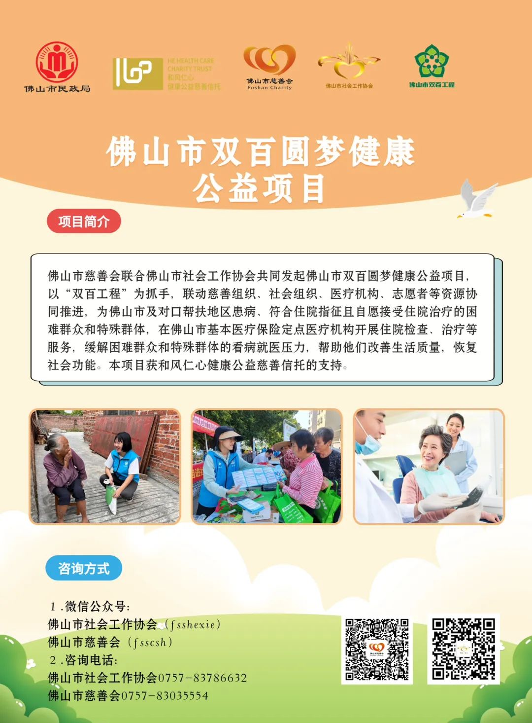 2024年9月23日,佛山市慈善会联合佛山市社会工作协会共同发起佛山市双百圆梦健康公益项目。
