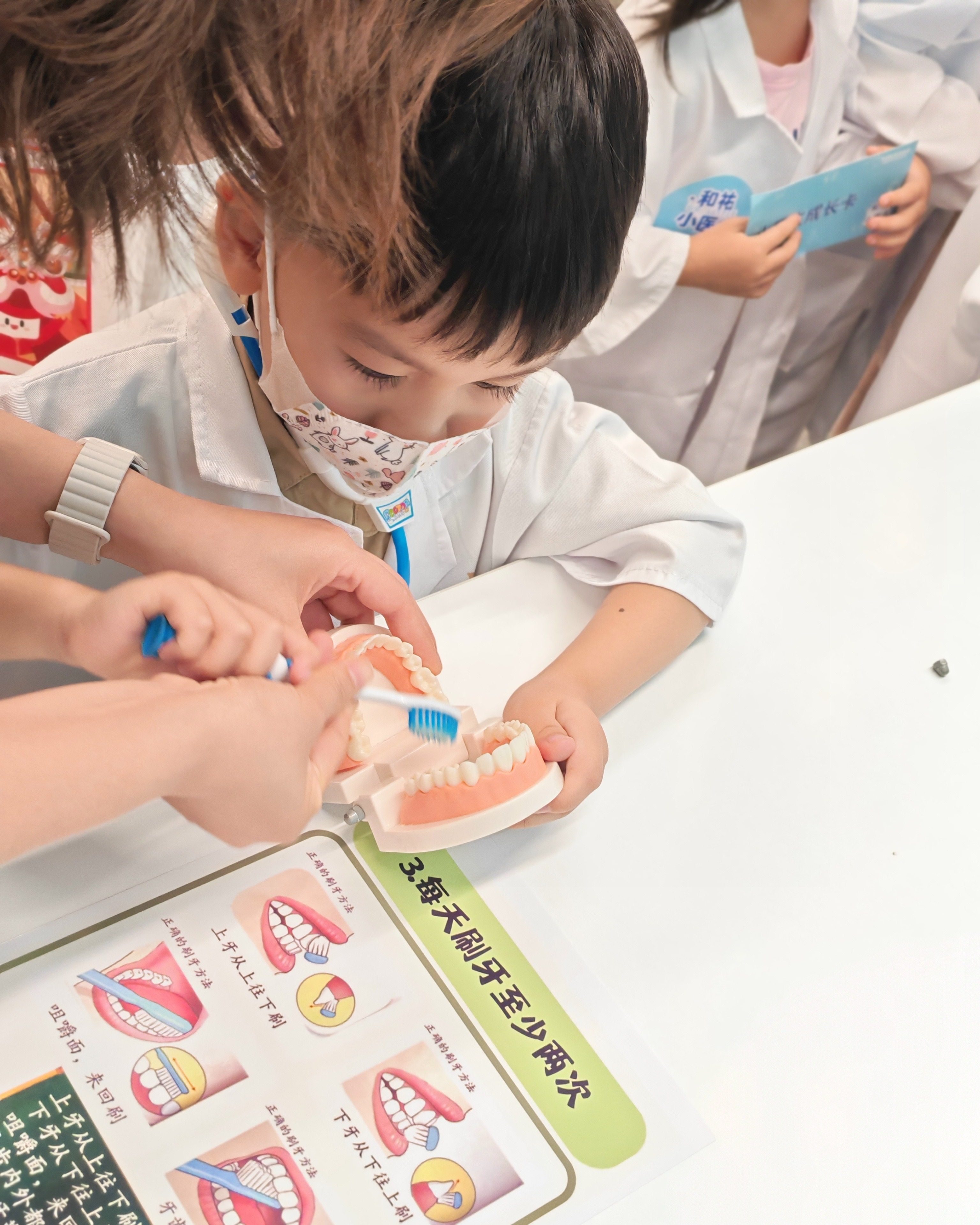 活动分为"医疗探秘三部曲":在急诊科医护的带领下,孩子们登上真实急救车,亲手操作急救训练模型,学习黄金救援技能;临床营养科张文青主任详细介绍膳食搭配要诀,助力家庭合理营养,健康成长。特别设置的"健康闯关三连击"体验区心脏怦怦跳、闪亮大眼睛、刷牙小达人等游戏互动,让健康知识在欢声笑语中扎根。