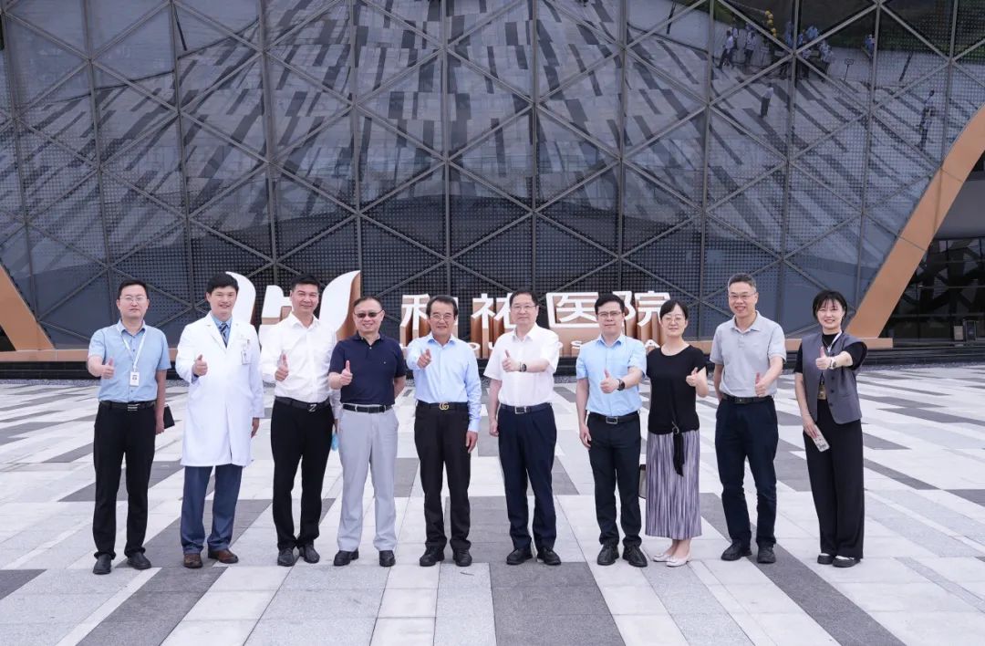 中山一院副院长、神经科学科带头人曾进胜,中山一院神经科ICU主任、神经免疫亚专业负责人冯慧宇,中山一院神经科脑血管病专科副主任、神经科临床研究室负责人张健,中山一院神经科CAR-NK项目联络人黄鑫,广东普罗凯融董事长兼CE0曾皓宇,广东普罗凯融副总经理李建喜等一行6人,参观了和祐医院门诊大厅、智慧病房、神经重症监护室、学术报告厅等区域。和祐医院融合智慧医疗与人文关怀的设计理念,给专家们留下了深刻的印象。