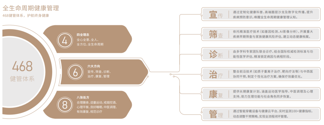 陈炼教授介绍,系列健康管理项目将秉承“和祐健康管理468工程”模式:从全心全意、全人、全方位、全生命周期的“四全”理念出发,围绕宣传、筛查、诊断、治疗、康复、管理六大核心方向,充分整合合理膳食、适量运动、戒烟控酒、心理平衡、良好睡眠、中医调理、有效康复、科学规范诊疗八大健康处方。该模式旨在为慢性病患者及有健康管理需求的人群,提供专业、落地、有效的全方位健康管理解决方案。