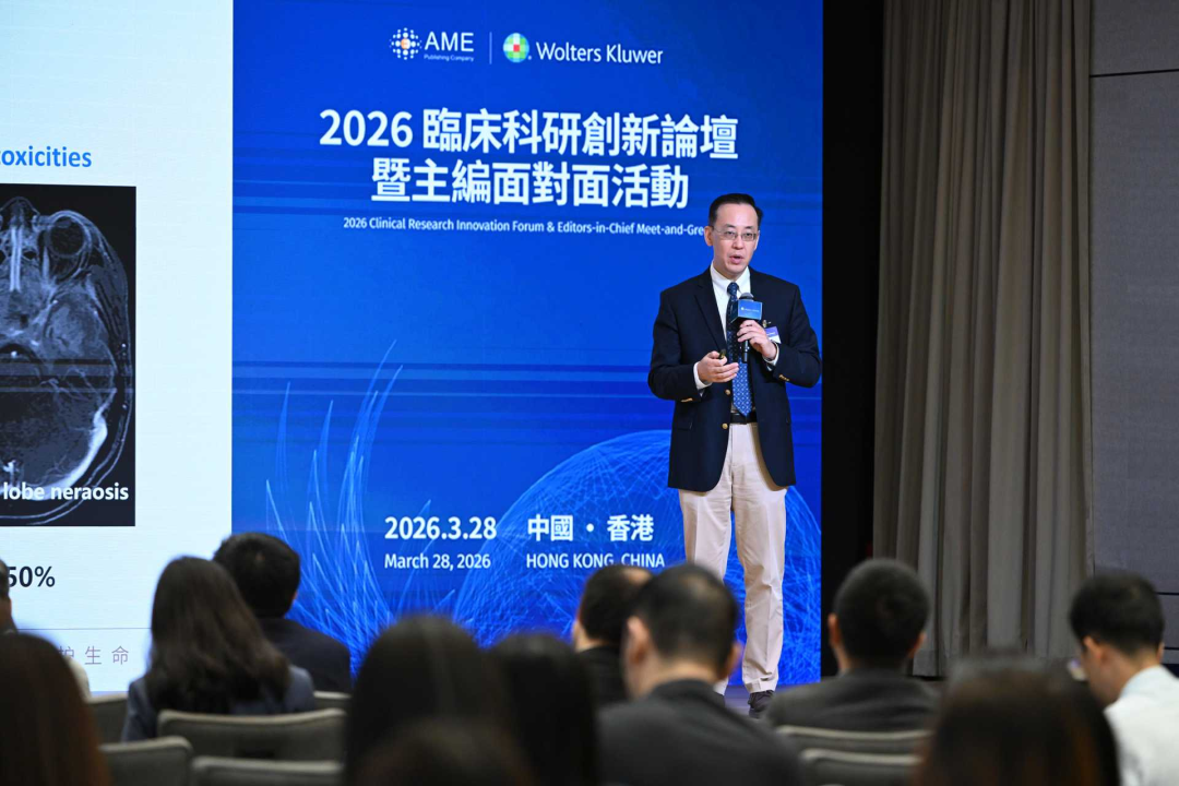 2026 年 3 月 28 日,由 AME 出版社与威科集团(Wolters Kluwer)联合主办的「2026 临床科研创新论坛暨主编面对面活动」在香港举行。本届论坛汇聚了近百位来自全球医学权威期刊的主编、编委、临床医生及科研人员,围绕临床科研创新、学术出版趋势及跨学科合作等议题展开交流。