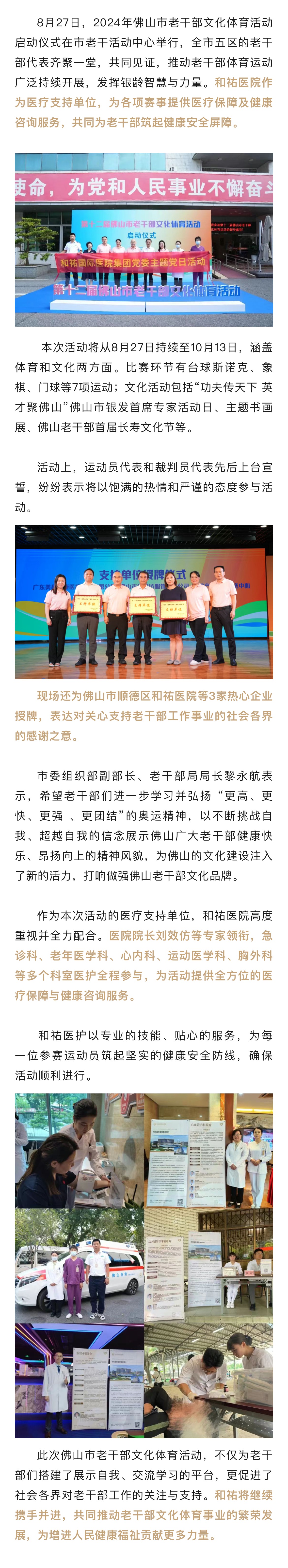 2024年佛山市老干部文化体育活动开幕,和祐携手共筑健康屏障