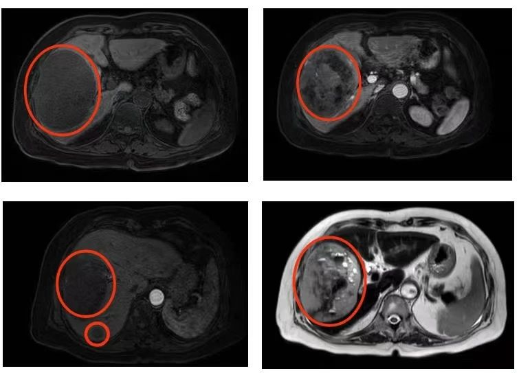 入院后,普外科迅速完善各项检查,MRI平扫+增强提示,肝右叶占位性病变11cmx10.6cmx7.6cm,怀疑其性质为恶性肿瘤。结合周奶奶病史、症状体征及相关辅助检查结果,考虑胃肠道间质瘤肝转移可能性大,而手术是唯一可能有治愈机会的方法