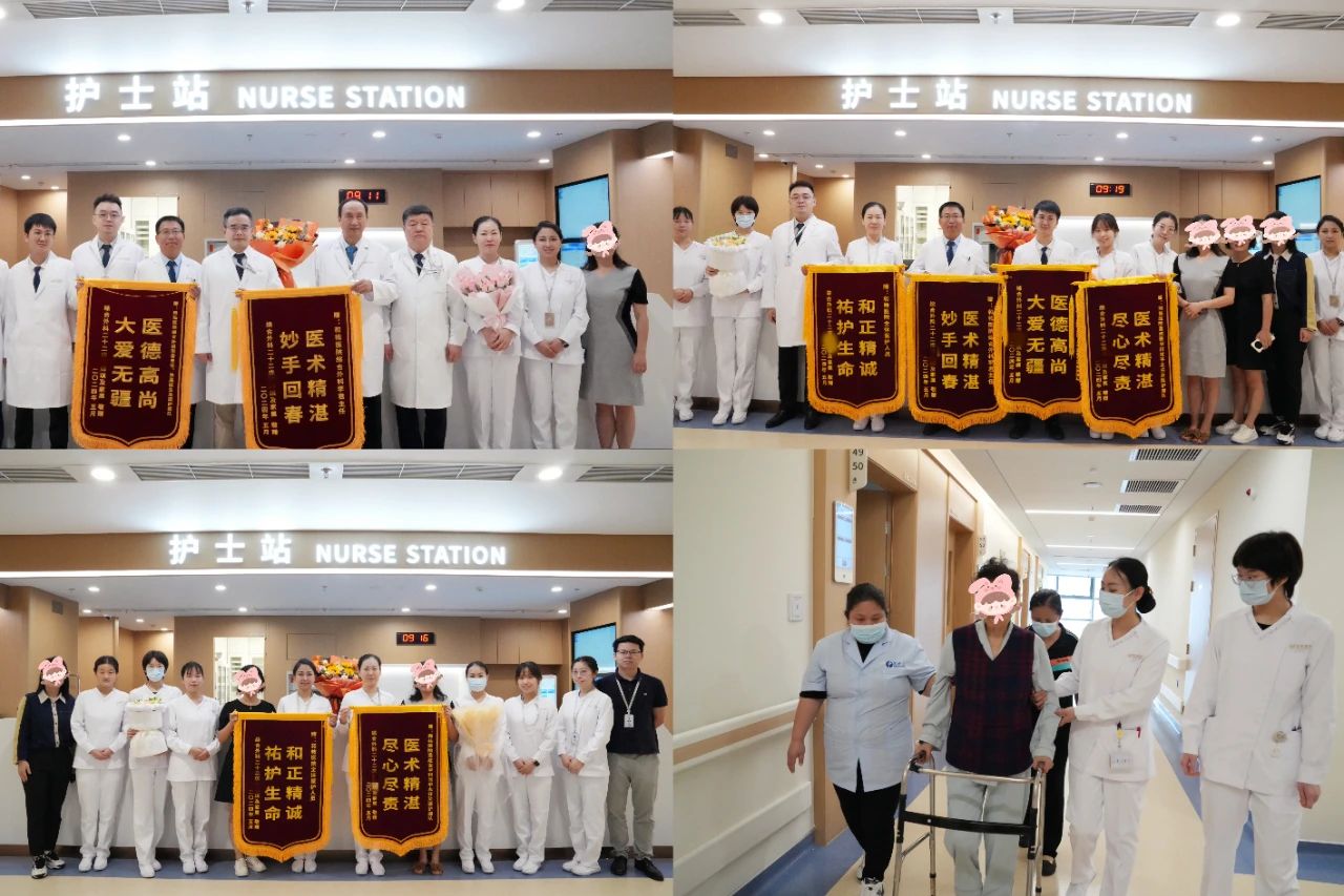 术后第4天,周奶奶从ICU转入普通病房。2周后,周奶奶康复出院并特意送上锦旗和花束。“主任、医生、护士、护工大家都把老太太照顾得很好,在这里住院非常安心!”周奶奶家属对此十分感谢。