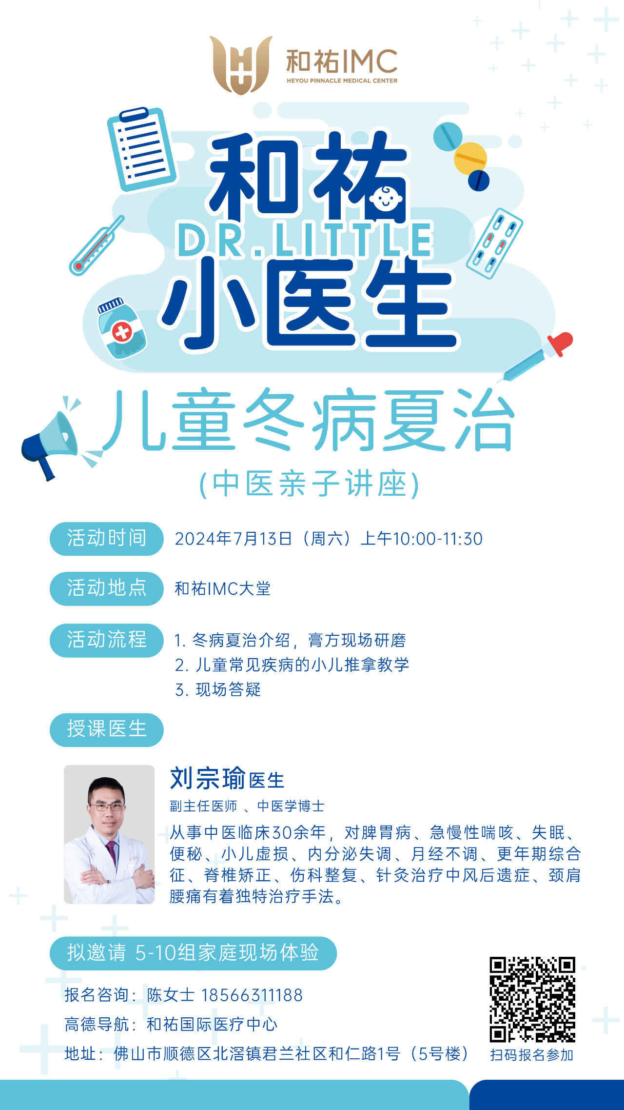 为了让更多家庭了解冬病夏治理念,深入学习家庭中医理疗理论与实践,和祐小医生中医体验营启动啦!7月13日(周六)限时招募10组家庭,邀您一起探索中医奥秘!