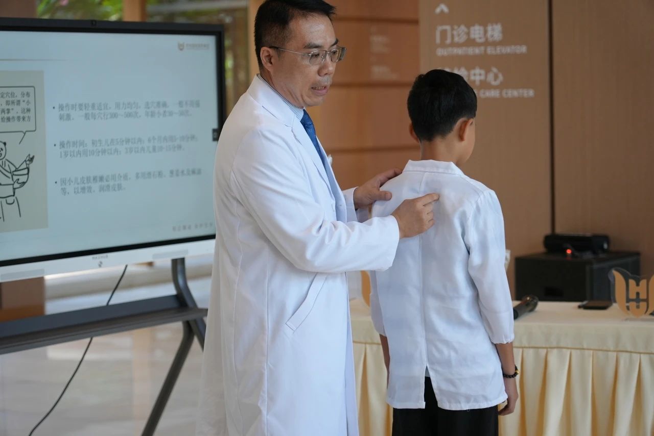 活动伊始,由中医学博士刘宗瑜主任担任主讲嘉宾,他以通俗易懂的语言为在场的家长和小医生们详细阐述了中医"冬病夏治"的传统理念,并深入介绍了小儿推拿的相关知识。刘主任凭借其丰富的临床经验和扎实的专业知识,赢得了现场观众的阵阵掌声。