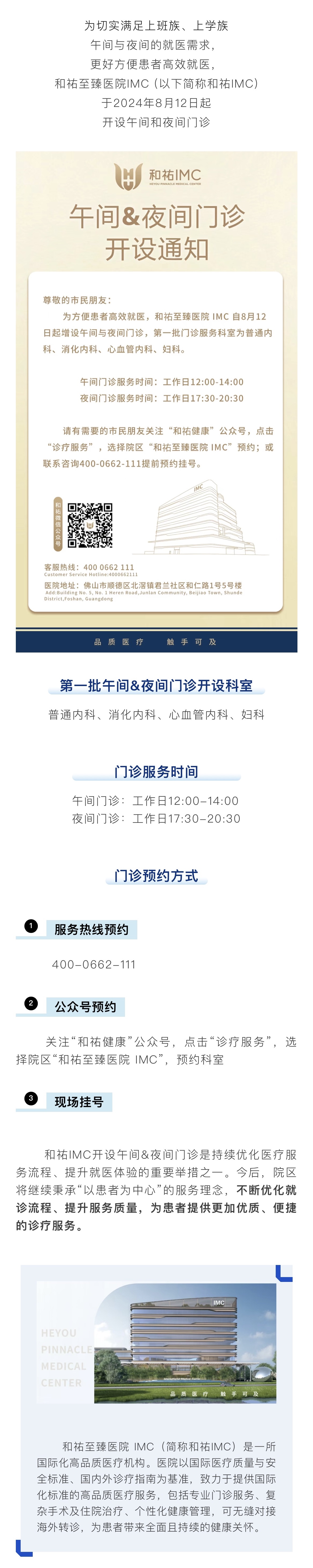 @上班族、学生 ,午间不打烊!和祐IMC增设“午间&夜间门诊”