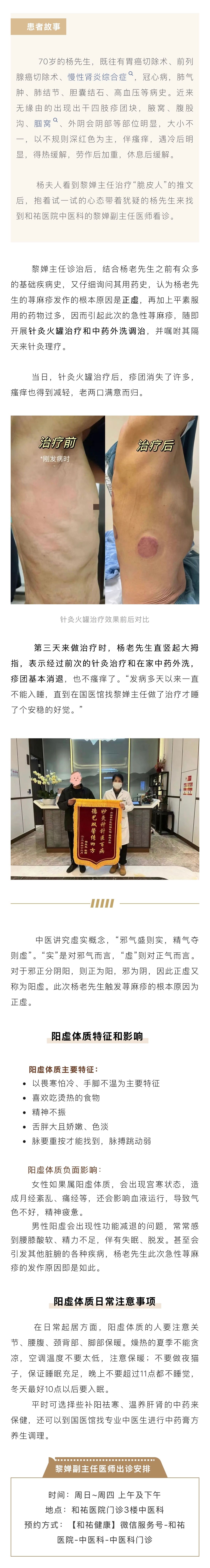 "脆皮"老人突发全身荨麻疹,和祐中医综合疗法三天疹团安然散退