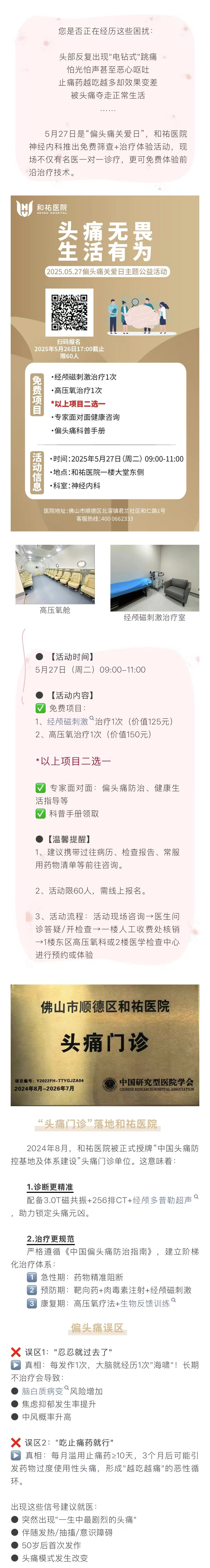 报名 | 偏头痛免费筛查+治疗体验!和祐医院守护您的“头”等大事