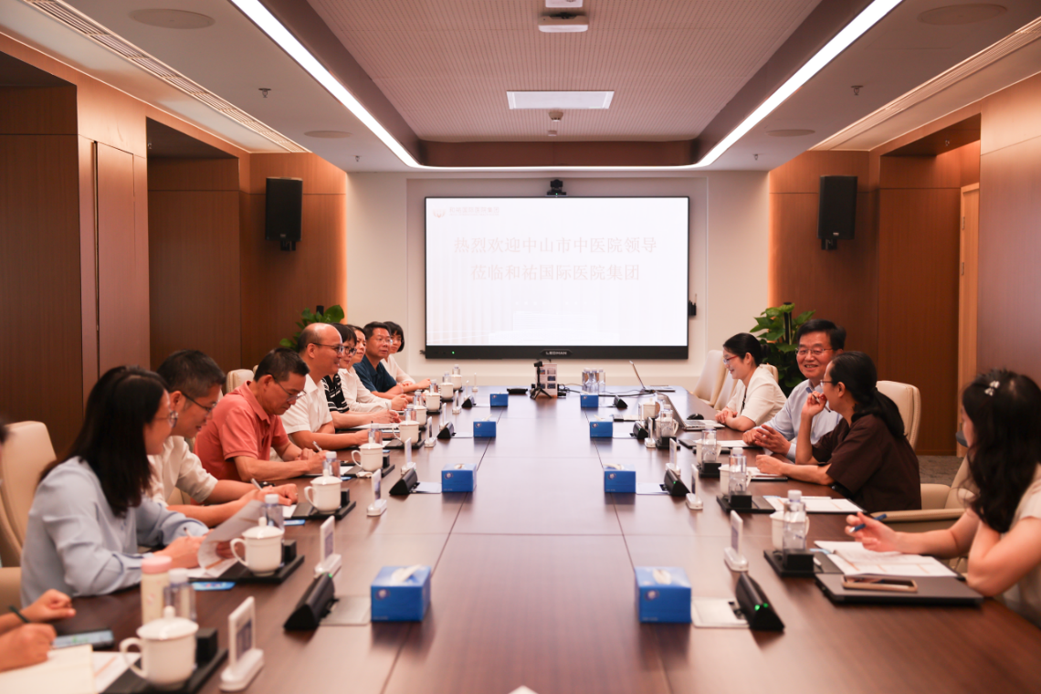 8 月 7 日上午,中山市中醫院黨委委員、副院長陳志標率團隊蒞臨和祐醫院參觀交流。和祐醫院副院長王建明等熱情接待。