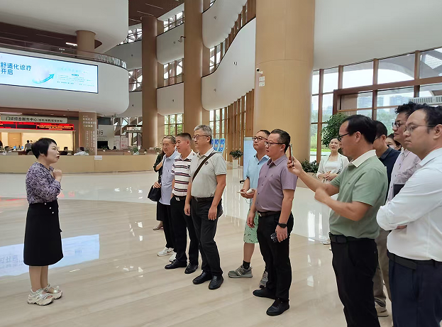 協會代表一行在醫院工作人員的引導下,參觀了主要臨床科室與尖端醫療設施,包括在建的質子重離子一體型設備,這一“治癌利器”預計2026年完成設備調試,2027年開展臨床試驗,屆時將為癌症患者帶來精准化治療的新希望。同時,醫院智能化建設也讓人眼前一亮,智慧醫保全程刷臉就醫、軌道物流系統、醫療機器人、自動發藥機等先進設備的應用,讓醫療服務更加高效、便捷。