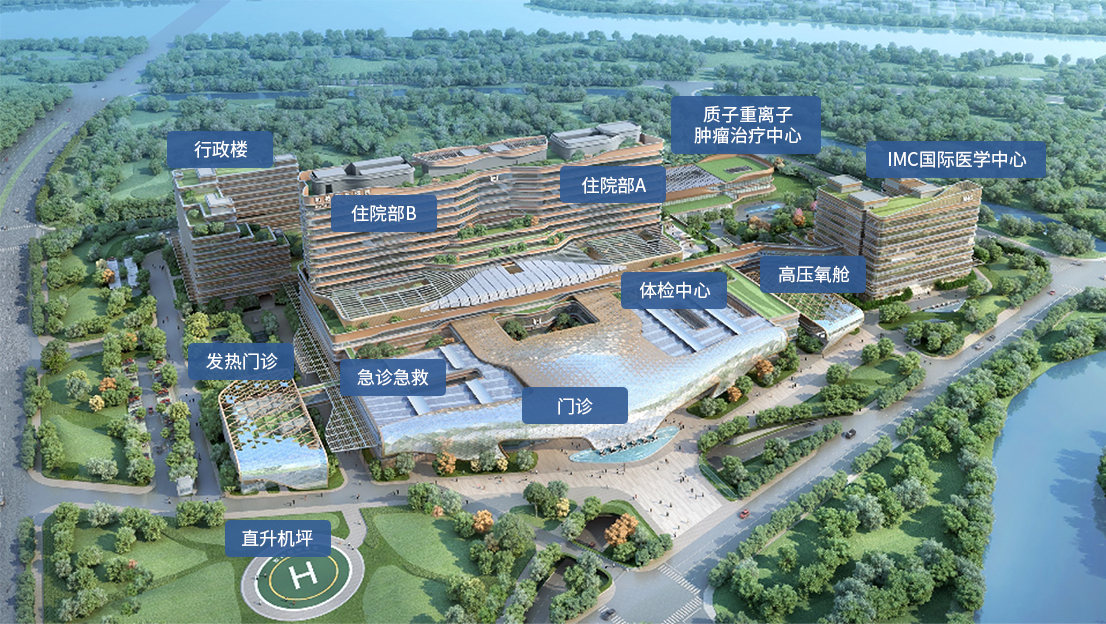 - 包含門診、住院、行政辦公、IMC國際醫療、質子重離子腫瘤治療、學術交流、醫學研究和教育培訓