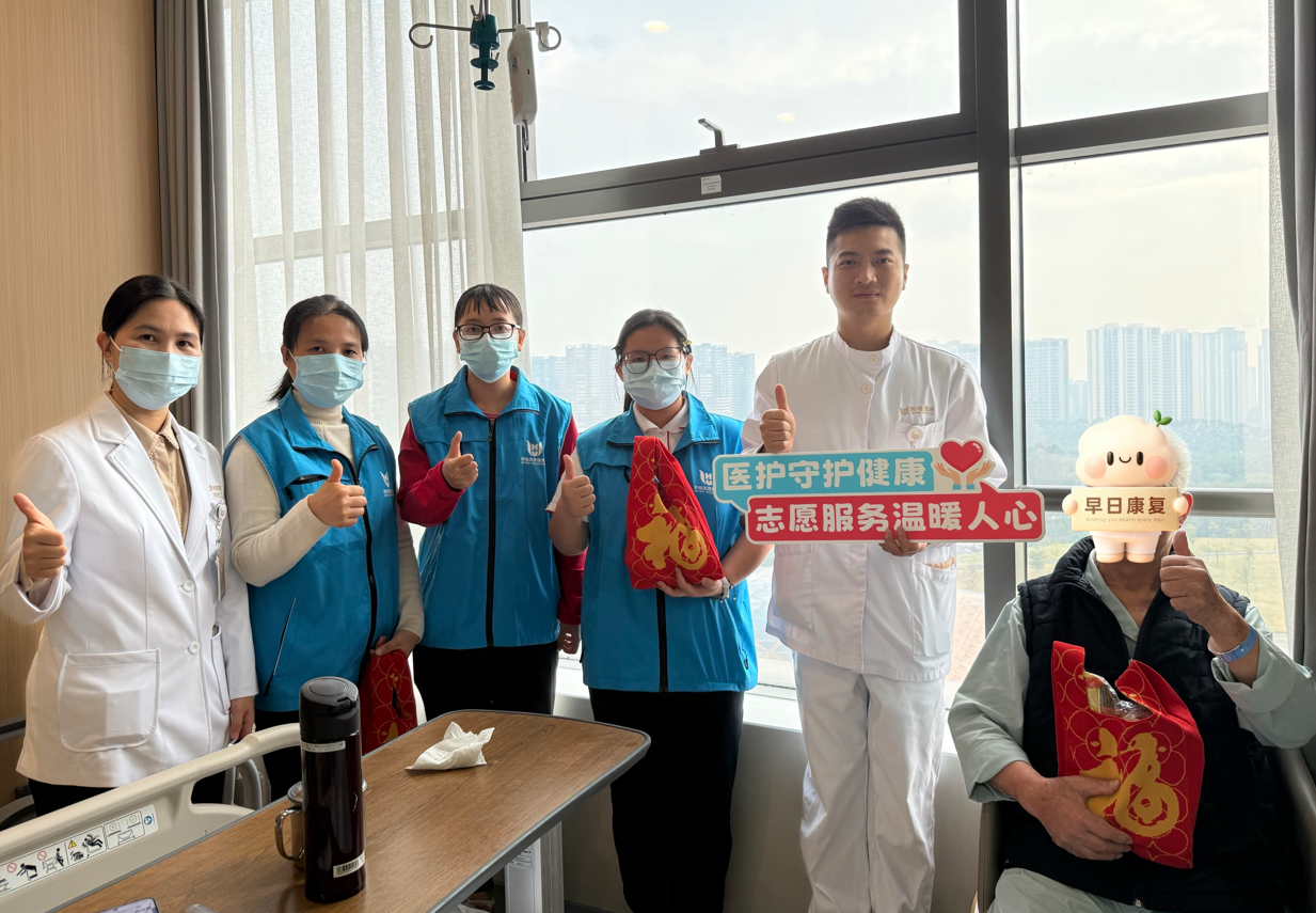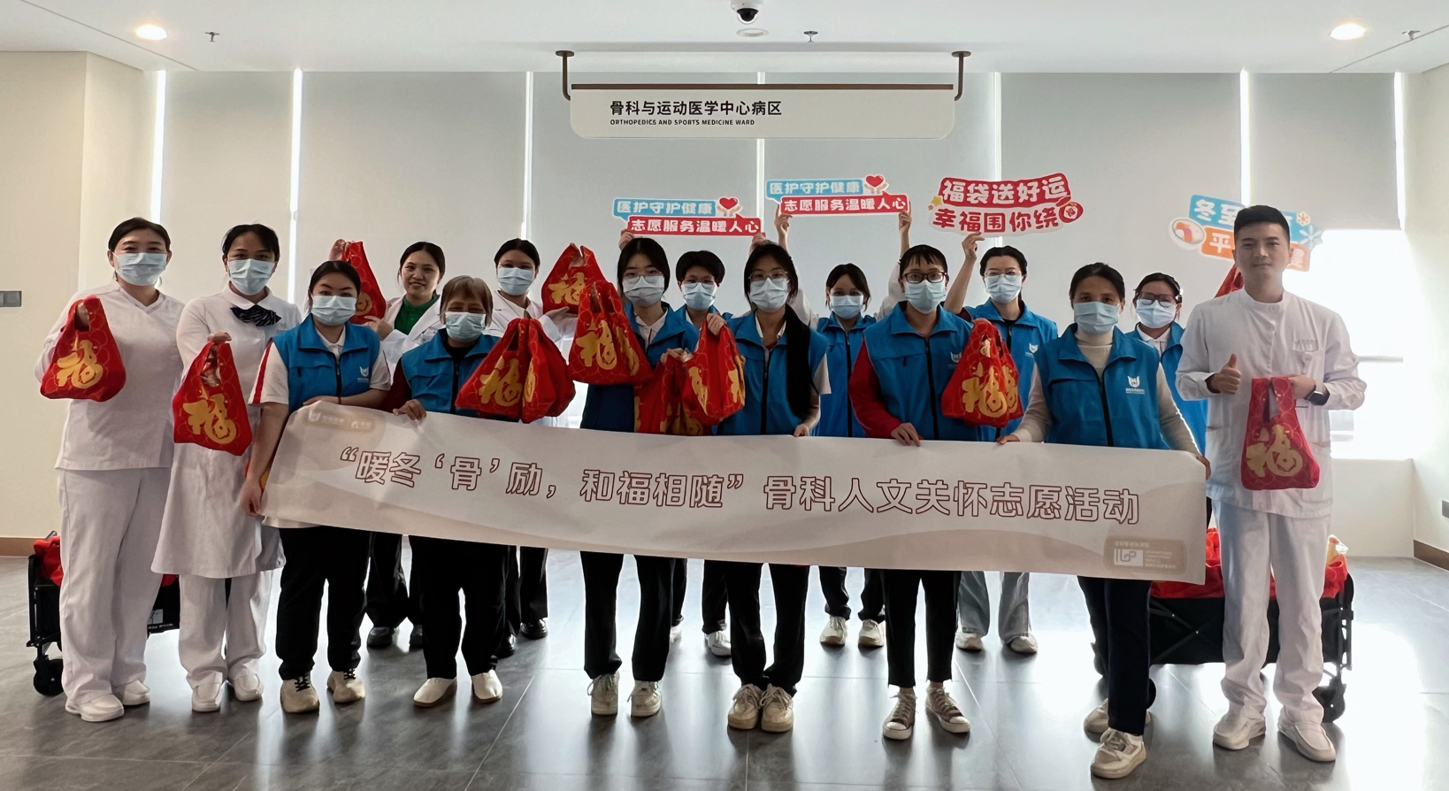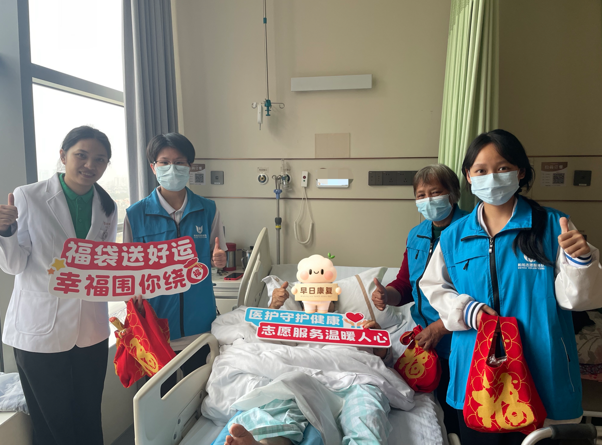 12月19日下午,在寓意團圓祥和的冬至佳節前夕,為深化醫學人文內涵,營造溫馨有愛的就醫氛圍,和祐醫院醫務社工特別策劃 “暖冬‘骨’勵,和福相隨” 骨科人文關懷志願活動。活動聯動北滘職業技術學校師生志願者及社會志願者與醫護人員一同走進病房,為住院患者送去冬至問候與暖心祝福,累計服務患者72人次。