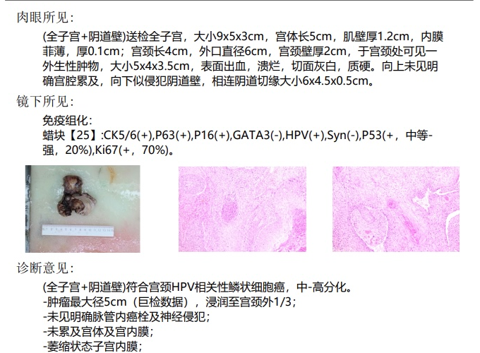 家人带她到当地医院医院,宫颈活检病理提示:宫颈中分化鳞状细胞癌。