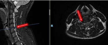 MRI影像学检查显示,连女士颈5/6椎间盘向右侧椎间孔区突出,右侧神经根受压,诊断为神经根型颈椎病和颈椎间盘突出。